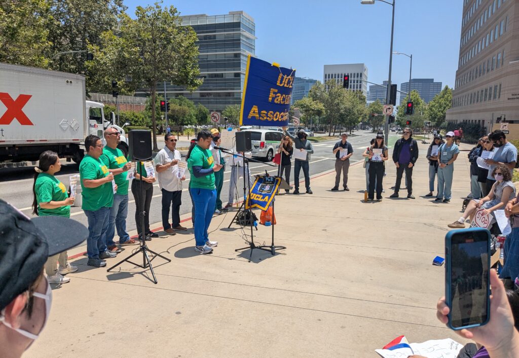 On July 15, the UCLA Faculty Association joined with UC-AFT, the union of teaching faculty and librarians at the UC, to tell the UC Regents (during their annual meeting at UCLA) to stop the cuts! Over 170 lecturers and librarians in the UC have had their classes cut and their jobs reduced or eliminated, and many are still awaiting their reappointment letters for the fall. We need to tell the Regents that these drastic and unnecessary cuts have consequences. UC-AFT is asking everyone to sign this petition and fill out this form to get involved.