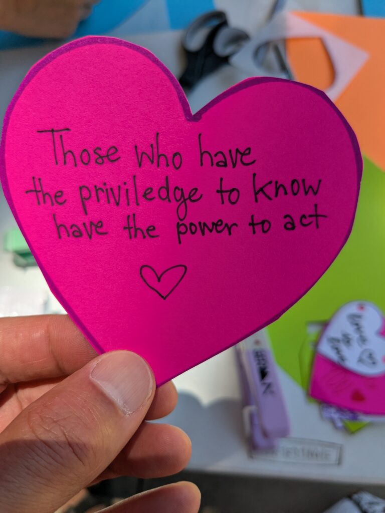 Since June we have been making a Chain of Hearts every Thursday at 12:30pm in the Court of Sciences so all of us can show our support for international, LGBTQ+, undocumented, immigrant, and trans students and scholars. Please join us!